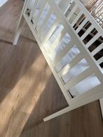 Afmetingen kinderbed : l= 125 cm, b = 66,5 cm, h = 88,0 cm. Dikte van de matras : 10 cm. Kinderbed met 3 hoogte lattenbodem, gemeten van de grond zonder matras. H 1 = 53 cm h 2 = 38 cm h 3 = 21 cm merk : troll boven aan de kant van het bedje is er ee...