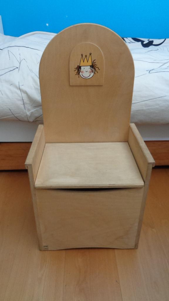 22 feb 26ann mercelisGeel - Verjaardagsstoel jongen/meisjeDe jarige mag plaatsnemen in een speciale verjaardagsstoel. De rug kan uit de gleuf gehaald worden om hem te draaien en zo aan te passen (jongen of meisje). In de lade onderaan kunnen verjaardagsspullGebruikt Ophalen