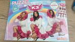 Puzzel k3, in heel goede staat. 204 Stukken. 390 Mm op 270 mm. Puzzel gemaakt, is volledig. Aan de rechterkant zie je van een stukje puzzel dat er een hoekje af is, was zo bij aankoop. Aan het stukje