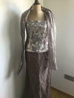 - Suitekledij 3 stuks Rok + Topje + StolaSuitekledij één maal gedragen, gereinigd in nieuwkuis ! Rok is zeemeermin model, afm lengte 94 cm omtrek lende rondom 83 cm, topje is gevoerd sluiting op de rug met rits en aan de hals met knopjesGedragen Ophalen