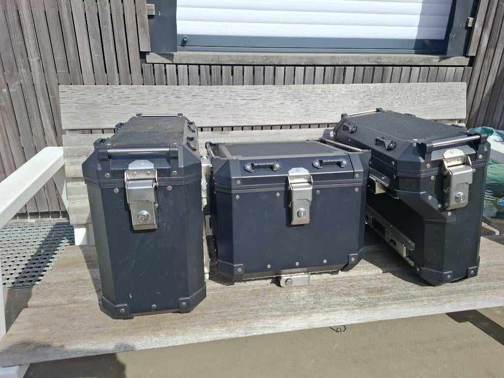 11 apr 26MARCSint-Kruis - BMW GS ALUMINIUM koffers3 mooie zwarte koffers voor bmw r 1200-1250 gsa in goede staat originele aluminium koffers bmw 1 sleutel bedieningGebruikt Ophalen