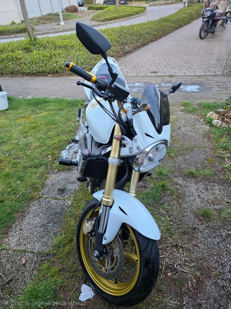 - Honda hornet 600, wit en goudMotor honda hornet van 2005. Perfect onderhouden, recent onderhoud gehad. Banden nog in orde 4 jaar terug wit gespoten,dus ziet er zo goed als nieuw uit. Geïntegreerde richtingaanwijzer in de achterli