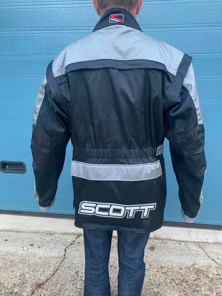 29 jan 26VanDoOosterzele - Motor jas Scott L zwart grijs met ventilatie aan borst MotoMotor jas scott l zwart grijs met ventilatie aan borst moto enduro cross pak broek en trui m ufo plast, rug boven en beneden uitneembare mouwenOphalen of Verzenden