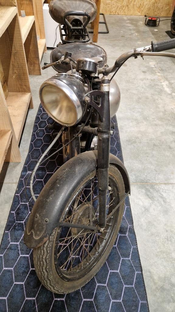 20 dec 25pietjeAntwerpen - Voorvork wiel spatbord voor oldtimer-motoren motorVoorvork met 19" wiel en spatbord, in zeer goede staat. Was onderandere op panther ts 98 gemonteerd. Prijs te bespreken. Waarschijnlijk voor adler ,aiglon , ajs , ardie , ariel , lavenir , awo ,Gebruikt Ophalen