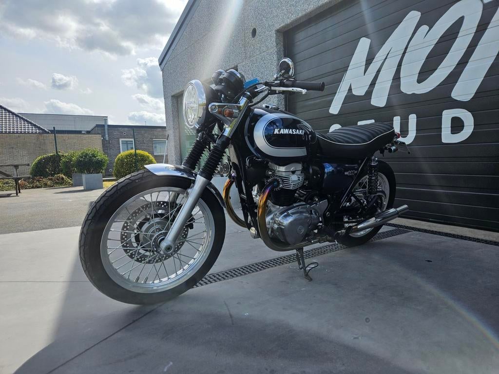 - Kawasaki W800 - 2022 - 5950kmKawasaki w800 2022 5950 km opties: unieke ombouw met retro logo's op de tank, open uitlaat, ecu mapping op maat, korte spatborden, nieuwe knipperlichten en achterlicht, retro spiegel. Alle origine20225.950 km