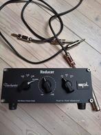 Een attenuator is een apparaat dat de sterkte van een elektrisch signaal vermindert zonder het signaal te verstoren. Het werkt door een deel van de energie van het geluidsgolven te absorberen en zorgt ervoor dat je je versterker op een hoger volume kunt laten spelen zonder dat het geluid te luid is voor je omgeving. Dit is vooral handig bij buizenversterkers die vaak het beste klinken wanneer ze dicht bij hun maximale vermogen worden gedreven.