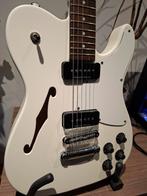 Een thinline gitaar heeft een halfholle romp, wat bijdraagt aan een unieke klank en resonantie. Deze gitaren zijn vaak lichter dan full-hollow modellen en hebben meestal een iets slanker profiel. De combinatie van het houten lijf en de pickups zorgt voor een warme, rijke toon die ideaal is voor verschillende muziekgenres.