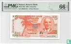 4 apr 26DLZBornem - Malawi 5 Kwacha 1994 - 1994Jaar: 1994. Tijdperk: malawi - republiek (1964-heden). Reeks: malawi - 1990-1994 issue. Voorzijde: portrait of dr. Hastings kamuzu banda as president at right, palm tree, man in dugout canoe and rayedVerzenden