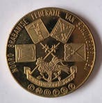 EergisterenCatawikiHeel België - Italië. Gold medal 1999 Aurea Sipleda 2000 - 10 gr AuGouden medaille uit 1999 'aurea sipleda 2000', gewicht 10 g, goudgehalte 0,916, met drie diamanten ter totaal 0,05 crt. Titania buitenste schijf 10 g goud 917, centrale schijf circa 3,5 g tita