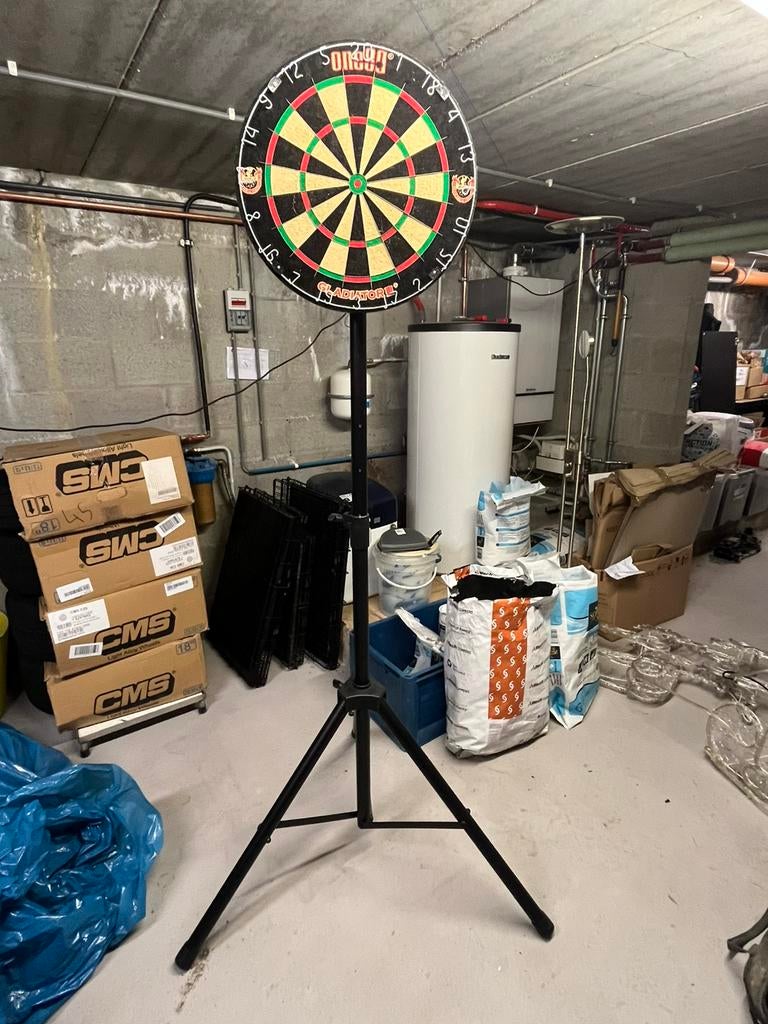 30 mrt 26stijnMerelbeke+Deel Zwijnaarde - Dartboard travel stand blackHouder voor dartboard. Makkelijk om mee te nemen op verplaatsing en te oefenen op verplaatsing. Amper gebruikt. Nieuwprijs is 69 euroZo goed als nieuw Ophalen