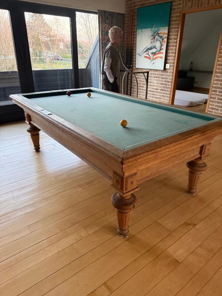 12 apr 26BartKoekelare - Biljart met bandsBiljarttafel in franse stijl (3 banden) prachtige biljarttafel van het huis van charles toulet, ontworpen in massief eikenhout. Afmetingen van het tapijt: 105 x 210 cm kenmerken: verwarmd model (geëlGebruikt Ophalen