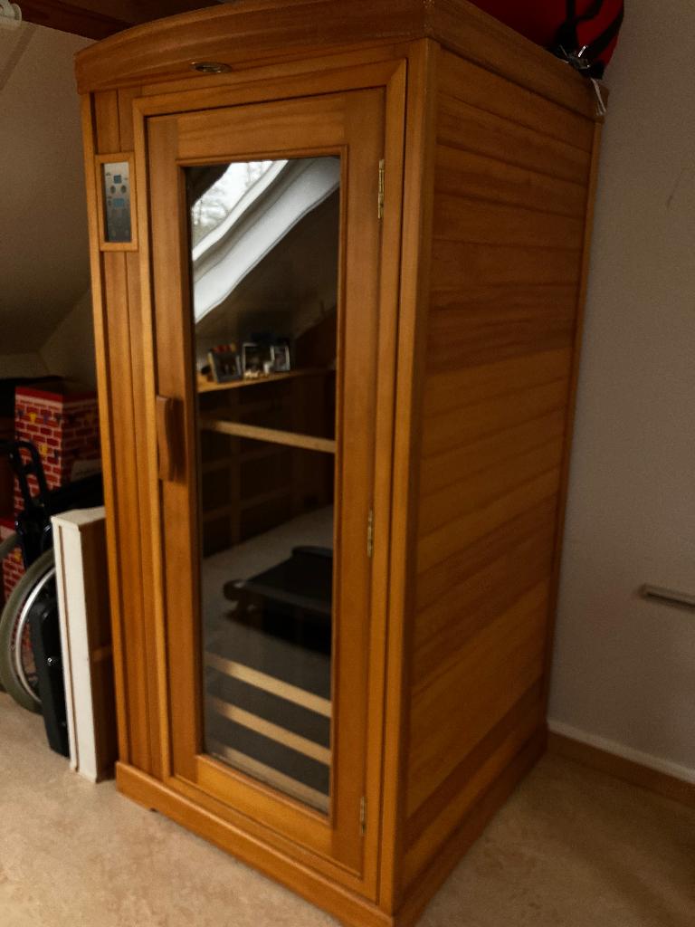 - infrarood cabineInfrarood cabine in goed werkende staat. Demonteerbaar in losse panelen.verlichting ,radio en cd speleler.Gebruikt Ophalen