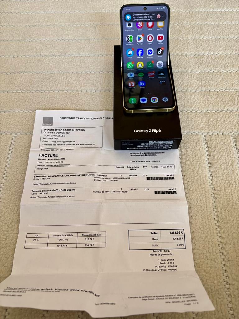 Garantie juillet 2026Zo goed als nieuw Ophalen of VerzendenSamsung Galaxy Z Flip 5 ( 512Go )Wit Touchscreen Zo goed als nieuw Zonder simlockGarantie juillet 2026Spa + Partie De Sart, De Theux17 feb 26 - Galaxy Z Flip 7 FESamsung galaxy z flip 7 fe 128 gb,ram 8 gb,dual camera 50 mp android 16,one ul 8 wi-fi 802.11 A/b/g/n/ac/6e, tri-band, wi-fi direct geen gebruikssporen, 5 maanden oud originele doos en kabel, originelZo goed als nieuw Ophalen