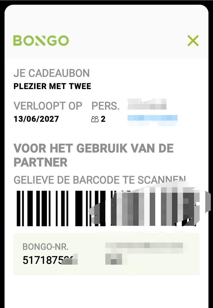29 mrt 26SilkeHamme - Cadeaubon wonderbox 3d weg voor 2p twv 159€Cadeaubon wonderbox punt be “3 dagen weg voor 2p” twv 159€ wordt verkocht wegens ziekte. Bon is geldig tot 30/09/2028 kan evt op site ook nog omgeruild worden met gelijkwaardige bonnen vraagprijsTwee personen