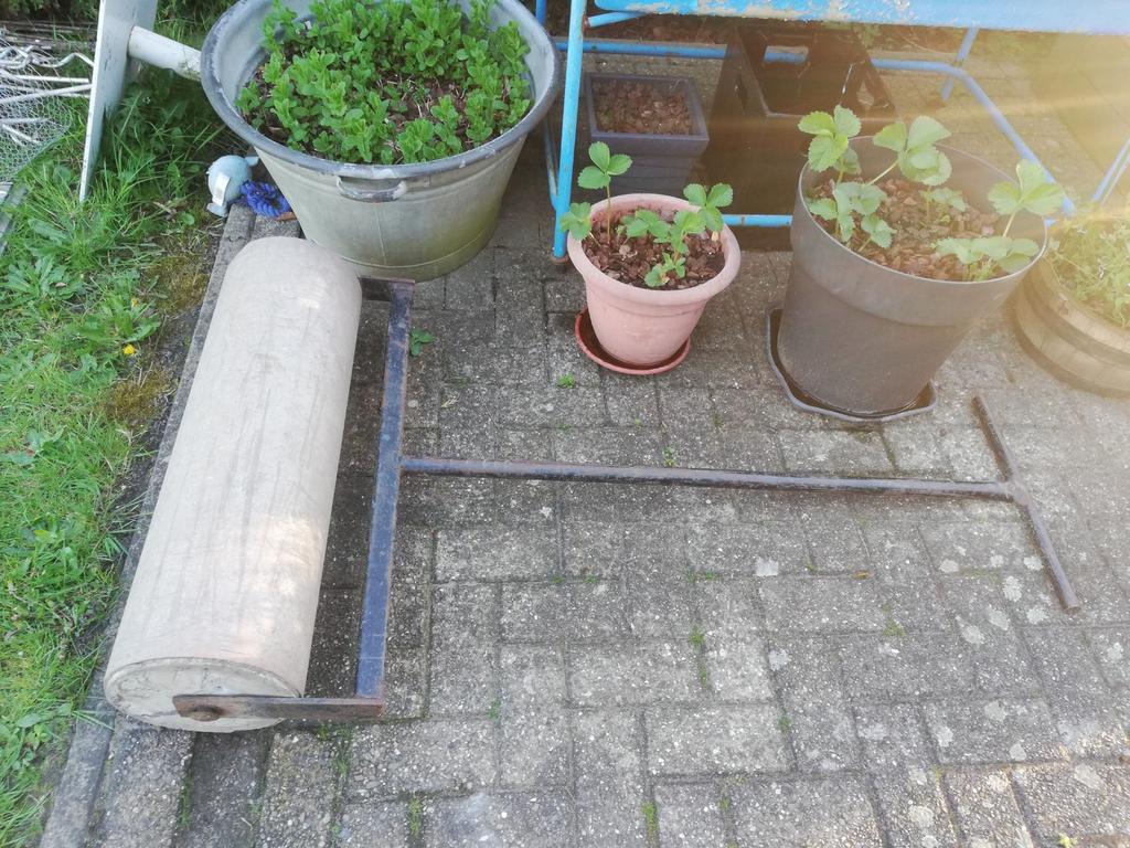 - Wals - pletwals - metaalZware pletwals - werd gebruikt door mijn vader om tapis plain te leggen maar kan ook gebruikt worden in de tuin om grond te effenenOphalen