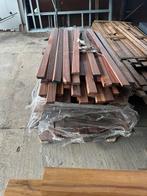 Padouk balken zijn een geweldige keuze voor tuinprojecten vanwege hun natuurlijke schoonheid en duurzaamheid. Ze hebben een rijke, warme kleur die mooi vergrijst naarmate de tijd verstrijkt, wat je tuin een stijlvolle uitstraling geeft. Daarnaast zijn ze van nature weerbestendig en kunnen ze goed tegen schimmels en insecten, waardoor ze ideaal zijn voor buitengebruik.