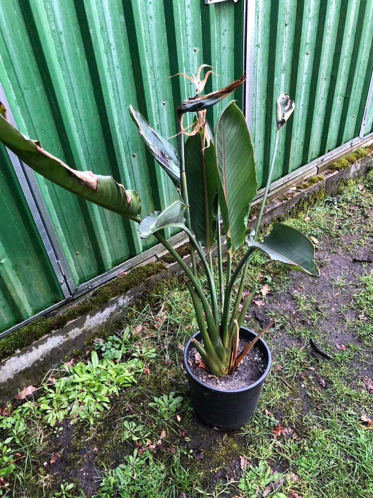 - Strelizia regineaBlaren hebben wat afgezien weinig licht in de winter maar nu heeft die al twee nieuwe blaren en er hangt nog een bloem die al voorbij isOphalen