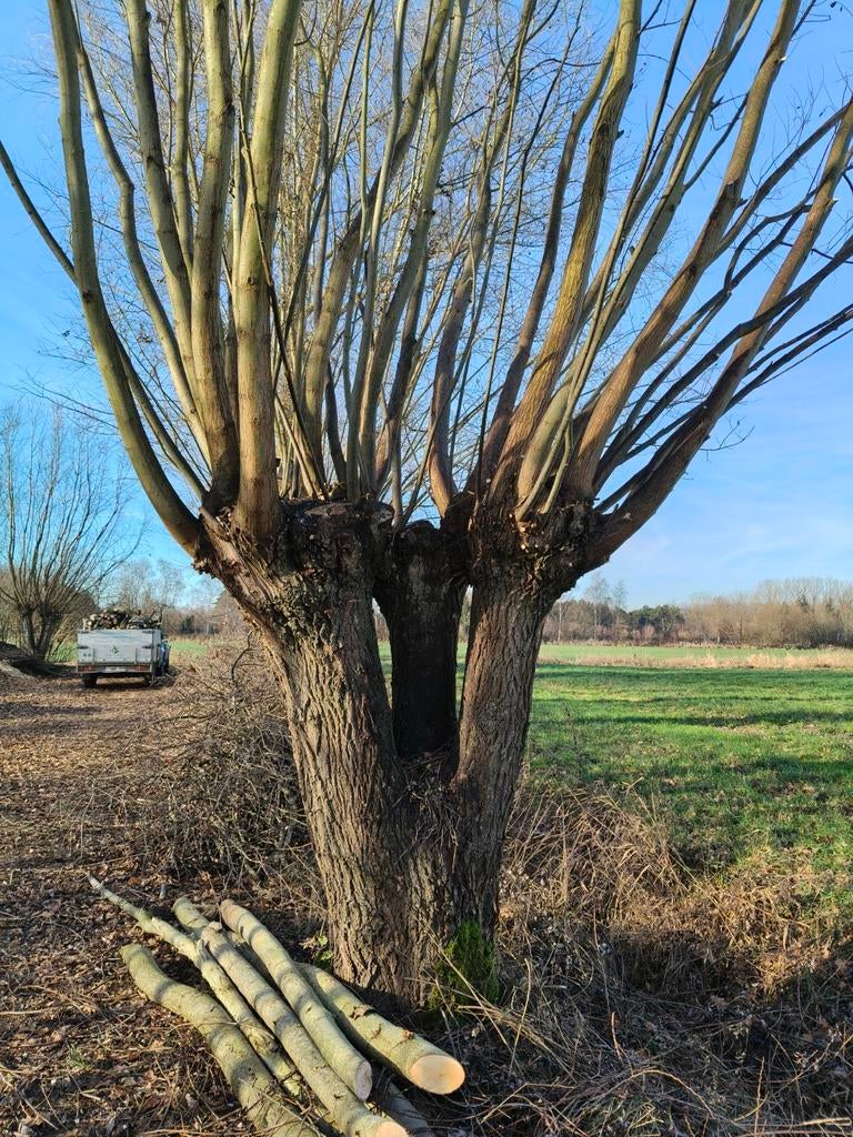 Knotwilgen zijn typische bomen die je makkelijk herkent aan hun karakteristieke vorm. Ze hebben een dikke, kort afgekapte stam en de takken groeien meestal recht omhoog. Daarnaast zijn ze erg sterk en kunnen ze zich goed aanpassen aan verschillende weersomstandigheden. Hun bladeren zijn smal en groen van kleur, en in de lente kun je soms mooie katjes zien ontstaan.