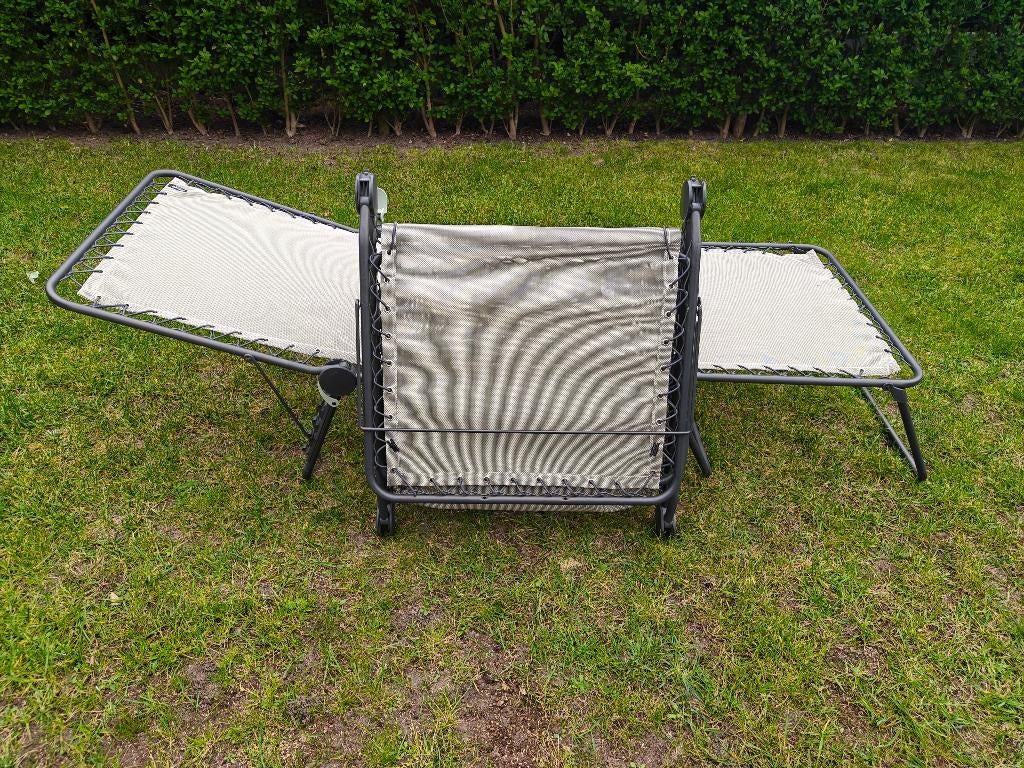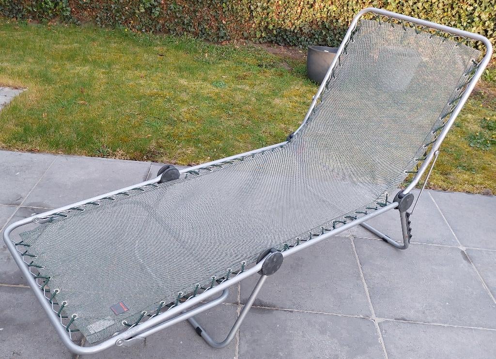 18 aug 25Brisella LavrijsHerselt - Lafuma Siesta - Stretcher - LigbedLafuma ligbed in goede staat. Enkel de elastiek dient vervangen te worden. Ideaal om te zonnen aan het zwembad of heerlijk te ontspannen in de tuin of terras. Stevig, comfortabel en compact op te bergGebruikt Ophalen