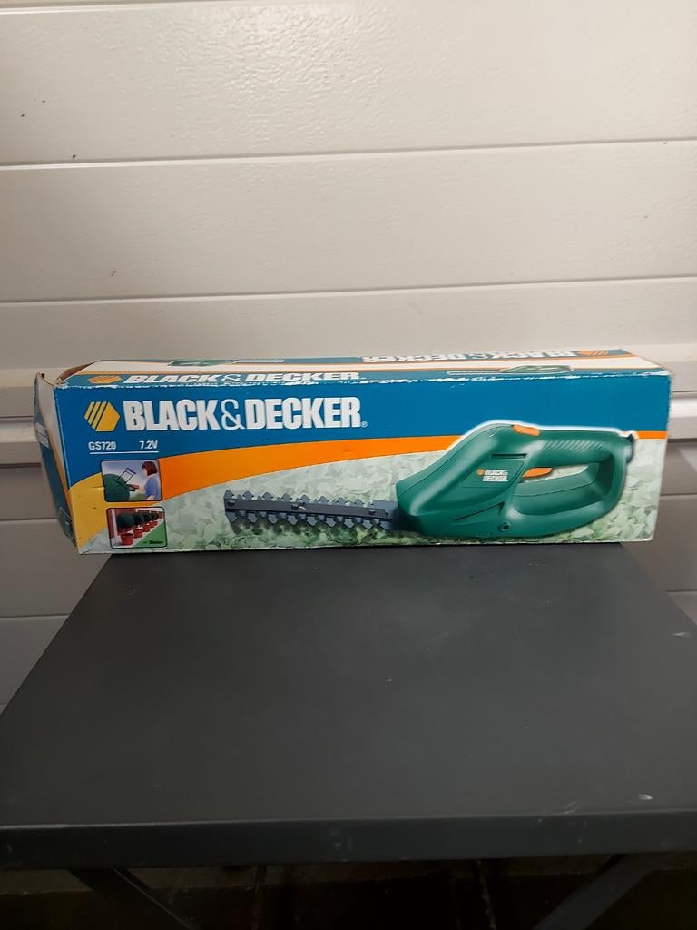 25 mrt 26lemmensPeer - Kleine accu heggeschaar Black&decker nieuwDit is een kleine heggenschaar van black & decker, model gs720 7.2V. De heggenschaar werkt op een accu en wordt geleverd met de bijbehorende oplader. Het is een compact model.Nieuw Ophalen