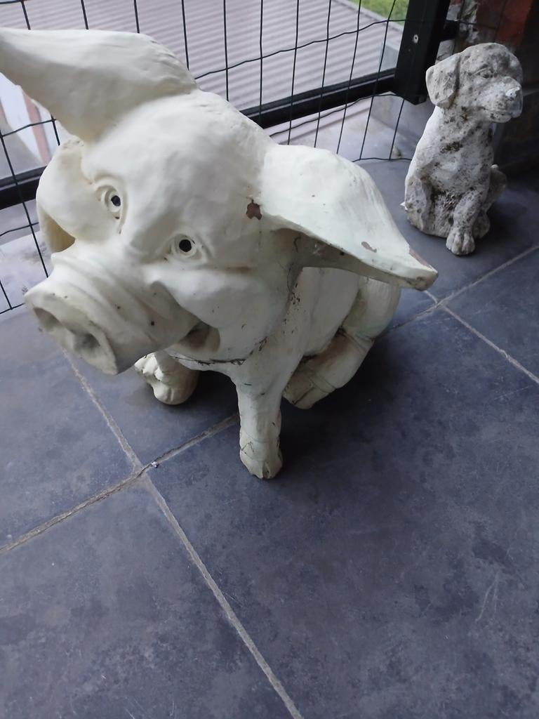 Wat is de betekenis van een varken tuinbeeld in de tuin?