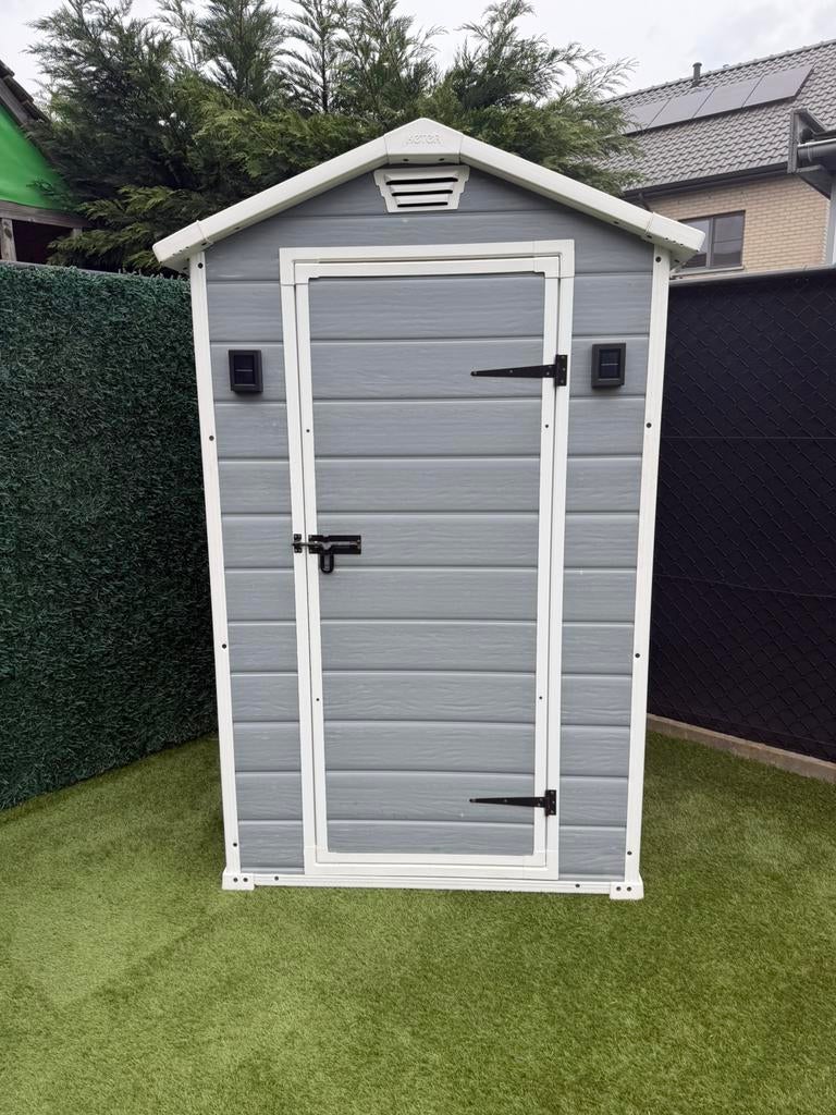 31 mrt 26lennnZonhoven - Tuinhuis stronghold 108 antraciet KeterTuinhuis in perfecte staat, nog maar 6 maanden gebruikt. Gemaakt van duurzaam kunststof dat bestand is tegen weersinvloeden en geen extra onderhoud vereist. Te groot voor onze tuin, daarom willen we dOphalen