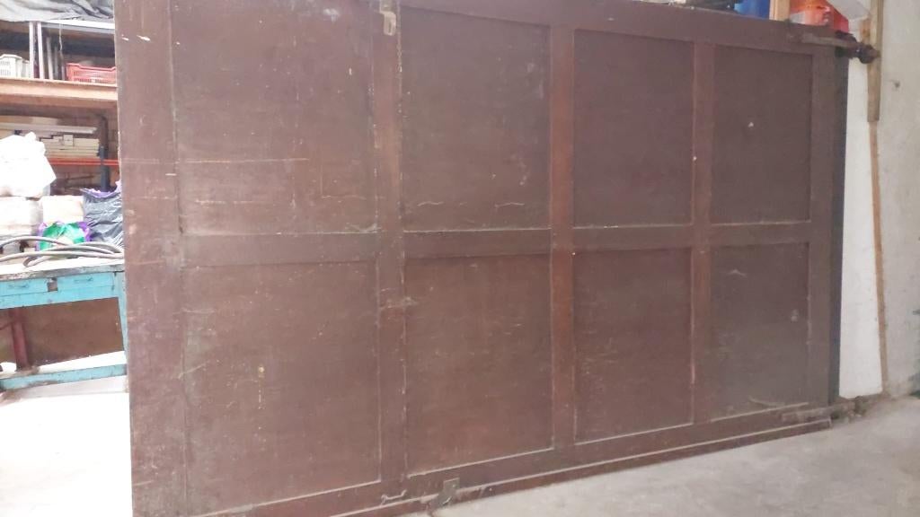 18 apr 26Poorten en hekwerkEkeren - Houten schuifpoortStevige houten poort in 2 delen. Schuifpoort met wielen. Afmetingen 1 deel : breedte: 2,55 m. Hoogte: 4,05 m.Ophalen