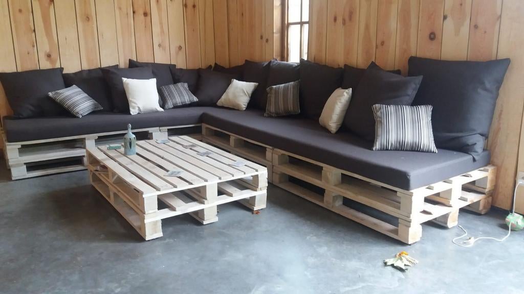 17 mrt 26Meynen krisDessel - Loungeset met veel kussens.Zelf gemaakte loungeset met op maat gemaakte kussens. Ik verkoop dit omdat verbouwingen gaan gebeuren. In goede staat. Ophalen ter plaatse. 240 Cm op 340cm. Met salontafel in pallet.Ophalen