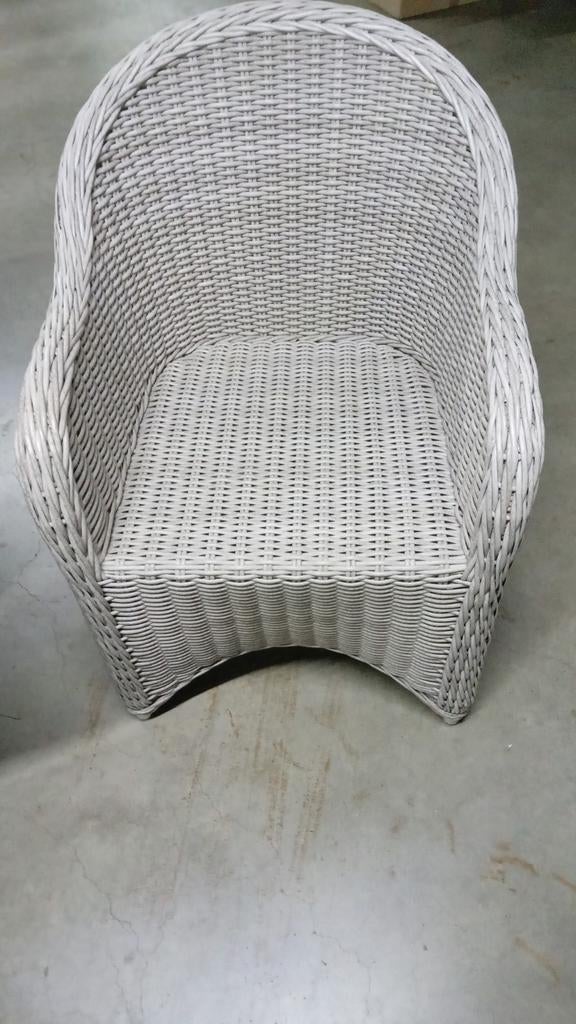 EergisterenLisbethKasterlee - Wicker stoelenWitte wicker stoelen, 6 gewone stoelen 2 met armleuningen. Hebben altijd dienst gedaan als eetkamerstoelen maar kunnen perfect dienen als tuinstoel. Zitkussens inbegrepen gewone stoel 10€ met armZo goed als nieuw Ophalen