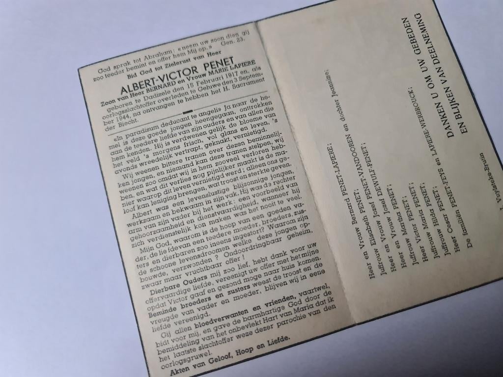- Albert Victor Penet oorlogsslachtoffer 1944Oorlogsslachtoffer albert victor penet dadizele 1917-geluwe 1944Ophalen of Verzenden