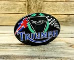 28 mrt 26emailleHeel België - Metalen reclamebord Triumph motor oil retro vintage mancavePrachtig metalen reclamebord van triumph motor oil, ideaal als vintage wanddecoratie voor café, keuken, bar, mancave of interieur. Het bord heeft 4 gaten om eenvoudig op te hangen en is nieuw in origZo goed als nieuw Ophalen of Verzenden