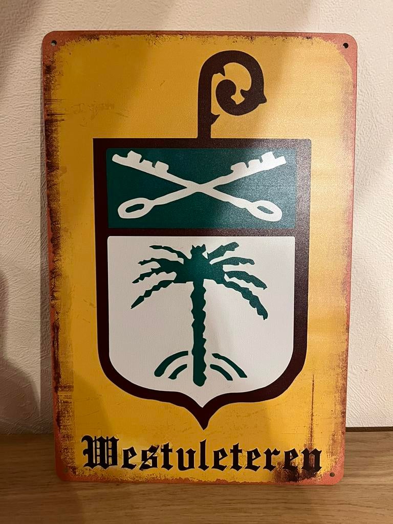 - Metalen reclamebord Westvleteren 2 - retro vintage mancave’Prachtig metalen reclamebord van trappist westvleteren 2, ideaal als vintage wanddecoratie voor café, keuken, bar, mancave of interieur. Het bord heeft 4 gaten om eenvoudig op te hangen en is nieuw iZo goed als nieuw Ophalen of Verzenden