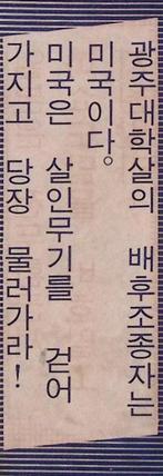 - Verenigde Staten en de wapens van het bloedbad (lijst optie)Getoond op deze prent is chun doo-hwan. Chun doo-hwan, die van 1980 tot 1988 president van zuid-korea was, leidde een militaire coup en staat bekend om zijn repressieve regime. Noord korea gwangju isVerzenden