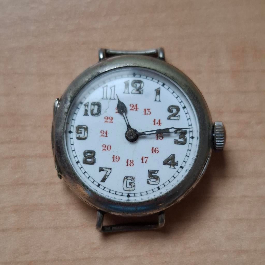 - Zeer mooie WO1 trench watchOriginele wo1 trench watch met verzilverde kast. Het horloge tikt, maar valt zeer snel terug stil.Ophalen of Verzenden