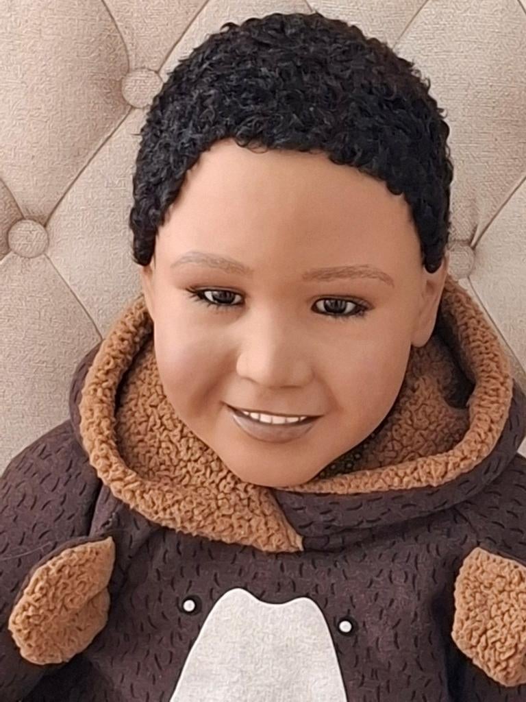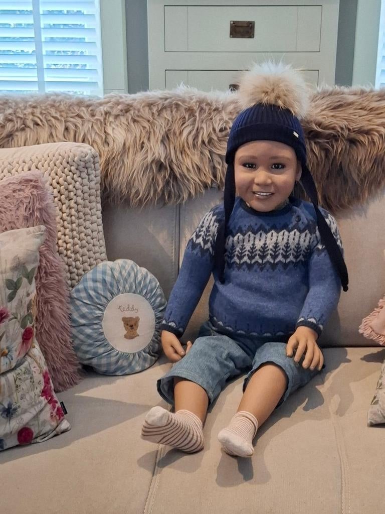 2 apr 26krisMol - Mooie stoffen babyMooie pop in stof werd gebruikt voor etalage baby pop van kinderkleding 54 cm groot dus draagt baby kleding kan recht staan of zittenOphalen of Verzenden