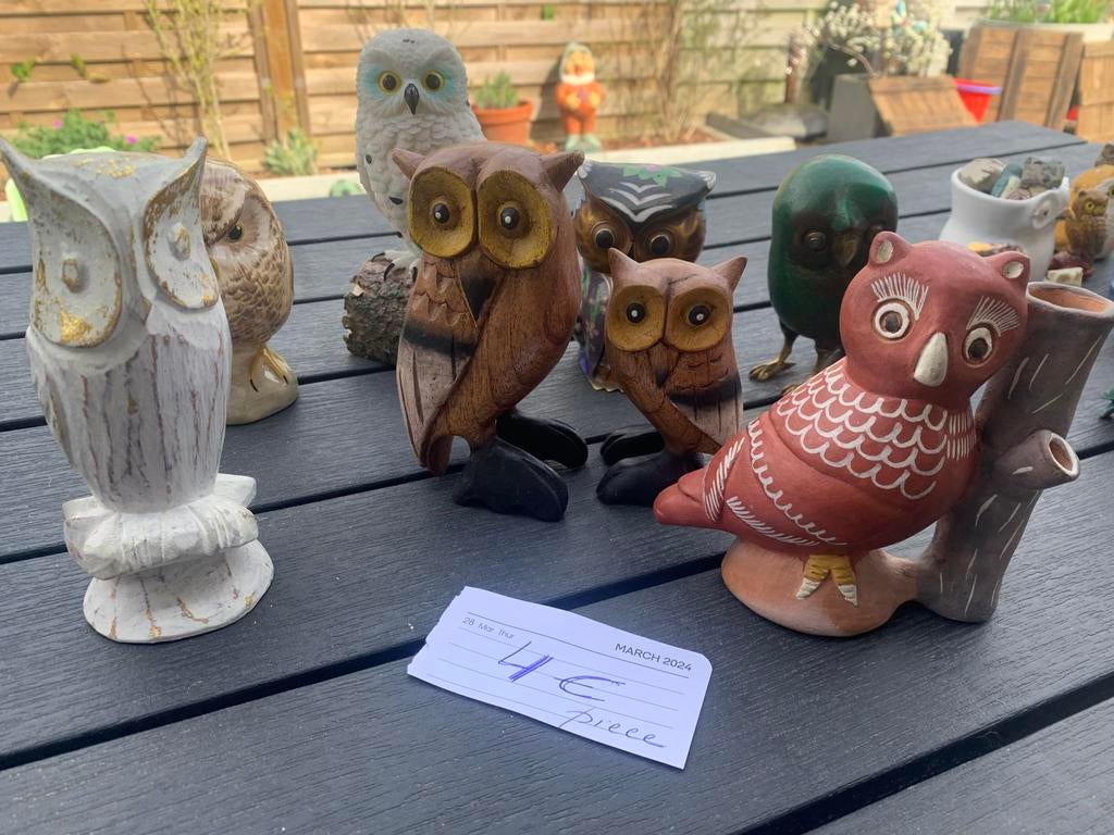 GisterenRita LiekensBoom - Grote collectie uilen beeldjes 87 stuks lotZeer uitgebreide verzameling van 87 uilen beeldjes in diverse stijlen, materialen en formaten. De collectie bestaat uit een mix van keramiek, hout, glas, metaal en andere decoratieve materialen. Van kGebruikt Ophalen of Verzenden