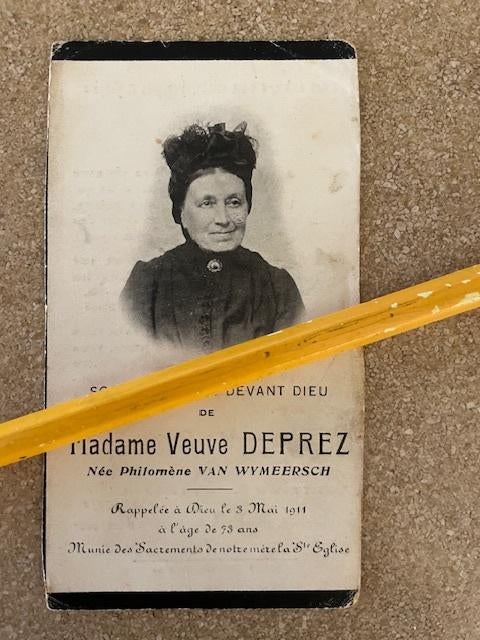 11 apr 26TopadvertentieJimmy van ZeelstTurnhout - Michelbeke/Brakel VAN Wymeersch Philomene, echtg DEPREZ FredMichelbeke/brakelmevr van wymeersch philomene° 1/5/1838 en overleden elst 3/5/1911, echtgenote deprez frederik ° elstOphalen of Verzenden