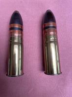 Een Duitse granaat heeft verschillende opvallende kenmerken, zoals een cilindrisch lichaam met een typische structuur. Vaak zijn ze gemaakt van metaal en kunnen ze diverse kleuren hebben, waaronder groen of grijs. De afmetingen variëren, maar ze hebben meestal een handzame grootte, waardoor ze goed in de hand liggen.