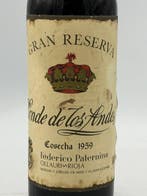 - 1959 Federico Paternina, Conde de los Andes - Rioja GranFederico paternina, conde de los andes, gran reserva uit rioja uit 1959, in een fles van 0,75 l in bordeaux-stijl, één fles (nr. 2.120 Van 3.000) Met volledig intact metalen kapsel en leesbaar etiket.Nieuw