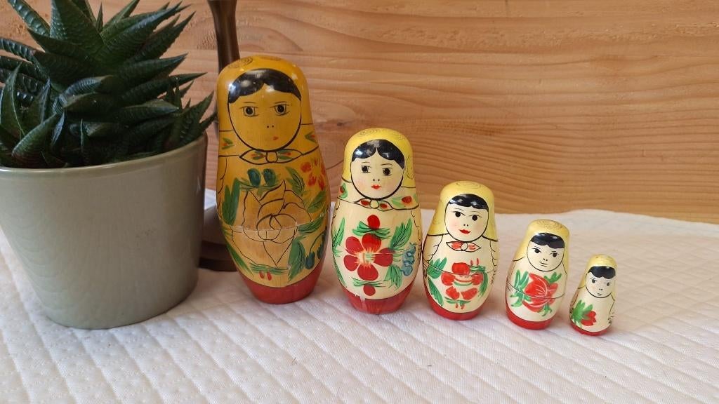 - Vintage Matroesjka's popjesSet van 5 vintage russische matroesjka-poppen mooi compleet tot het kleinste popjeGebruikt Ophalen of Verzenden