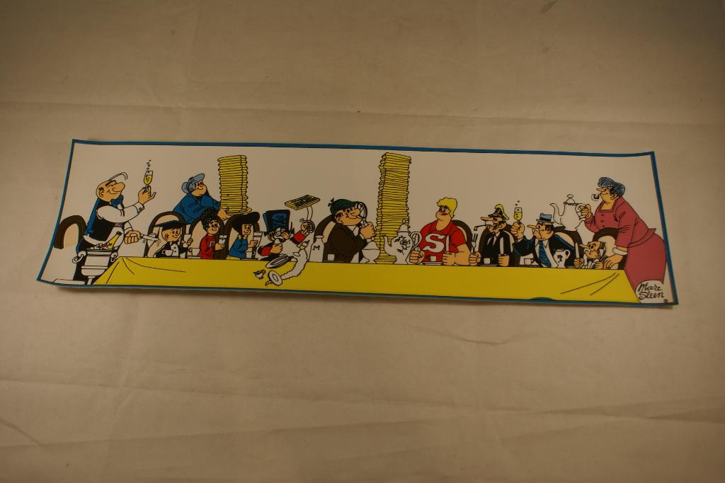 - Nero Marc Sleen feestmaal rubber strip tekening plaat '70Een vinyl, rubber plaatje, solide, met de afbeelding van nero aan de feestmaaltijd. Deze werd volgens mij vroeger in de jaren 70/80 gebruikt om op de boekentassen te naaien. Is een stevige solide striNieuw Ophalen of Verzenden