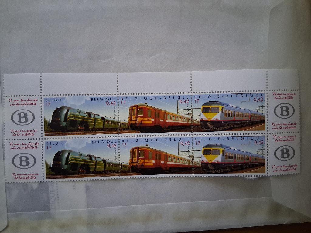 GisterenTopadvertentiewww.books-on-collectables.euWevelgem - België 2001 - NMBS-blok 75 jaar, dienste van de mobiliteit”Details van het artikel: land: belgië jaar: 2001 thema: 75ste verjaardag van de nmbs (belgische spoorwegen). Inhoud: verticale band van 6 postzegels (2 complete sets van 3 verschillende treinen) metOphalen of Verzenden