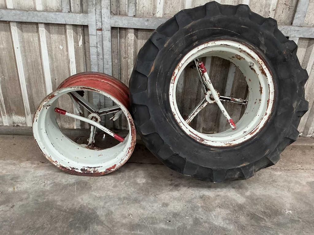 - Dubbele wielen Molcon5 arms molcon ster in goede staat 13.6 R 38 banden 40% weg wegens verkoop tractor passen naast 420/85r34 wielen of wielen met gelijkaardige velg en hoogteOphalen of Verzenden