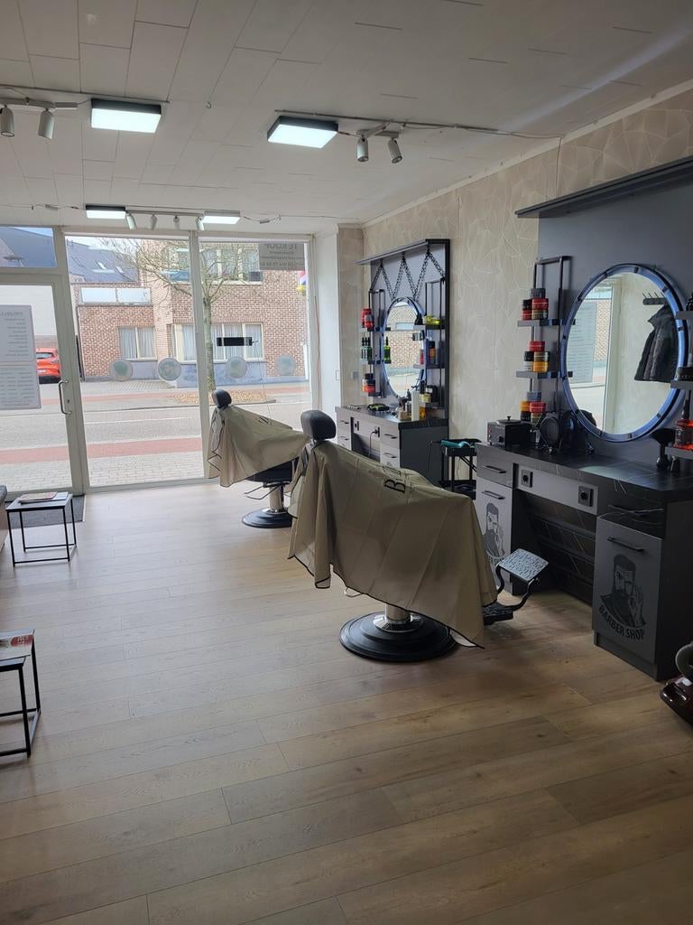25 dec 25AlainAalst - Te koop handelspand of KapperszaakTe koop of te huur vragen prijs 800€ euro peer maand handelspand of kan kapperszaak straten in retie 2470 orginlie stoelen kasten met spiegel als metral van kapper ook te koop turnhoutsebaan 10 g