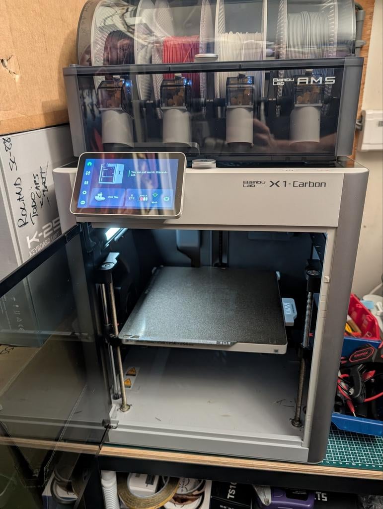 - Bambu Labs X1-Carbon met AMSBambu labs x1-carbon met ams, in heel goede staat. In totaal heeft de 3d printer 240 uren gedraaid. Filament krijg je er gratis bij. Gaat weg wegens stopzetting hobby.Ophalen
