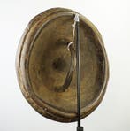 12 mrt 26JolanBeringen - schild - Shoa/Galla(Oromo) - Etiopië - schild - Hippo -Antieke schild getiteld schild - shoa/galla (oromo) uit ethiopië, een zwaar lederen schild van 2,7 kg met afmetingen 50 cm bij 50 cm en 20 cm dikte, gedateerd 1900–1950, in redelijke staat met twee ou