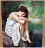 EergisterenAlvarezWatermaal-Bosvoorde - Domingo Alvarez Gomez (1942) - NO RESERVE - Sueño veraniegoOrigineel pastelwerk van domingo álvarez gómez, getiteld no reserve - sueño veraniego, spanje, 1970–1980, met een naaktfiguur, 55 cm hoog en 46 cm breed, met handtekening van de kunstenaar en in goede