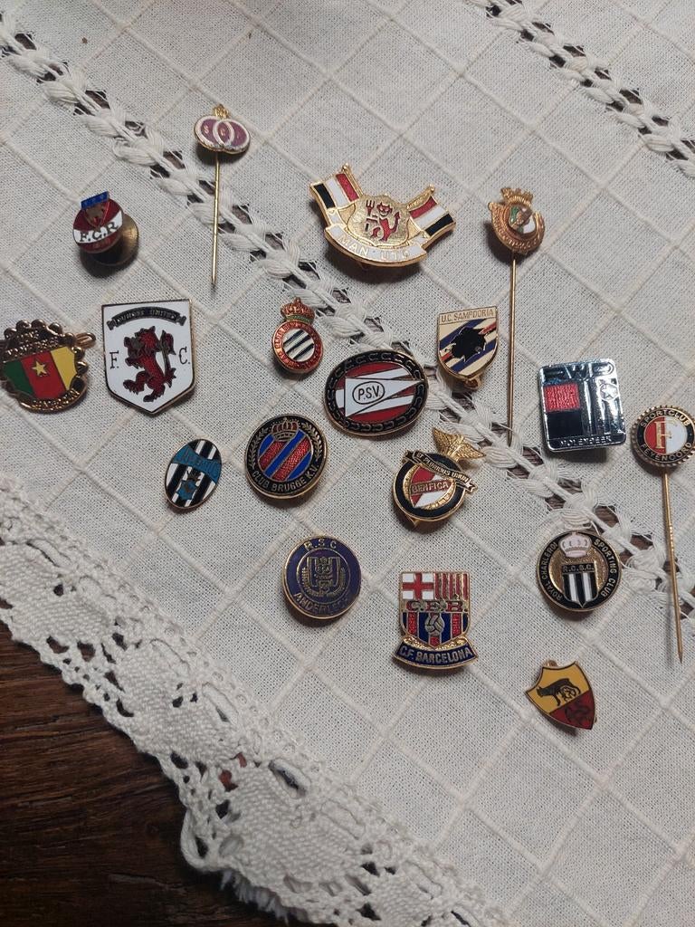 28 jan 26Joeri VandewalleRoeselare - Voetbal pins vintageVerzameling vintage voetbal pins (barcelona, italië, dortmund, frankfurt, anderlecht, belgië, club brugge, rwdm, feyenoord, gent, fifa, sporting hasselt, darmstadt, ...). Verkocht in z'n geheel; bGebruikt Ophalen of Verzenden