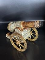 Een antiek kanon is vaak te herkennen aan zijn unieke ontwerp, vervaardigd uit materialen zoals brons of ijzer. Je ziet vaak complexe versieringen en historische gravures die het verhaal van het kanon vertellen. Het gewicht en de afmetingen kunnen sterk variëren, afhankelijk van het type en de periode waarin het gemaakt is.