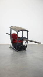 EergisterenBLIKSEMOostham - Koets - Hout, Fluweel - Antieke draagkoets, sedan chair,Antieke draagkoets uit 1850–1900, vervaardigd uit hout met rode fluwelen bekleding, in goede staat met lichte ouderdomskleurverschijnselen, afmetingen 394 cm breed, 129 cm hoog en 70 cm diep. Wanneer